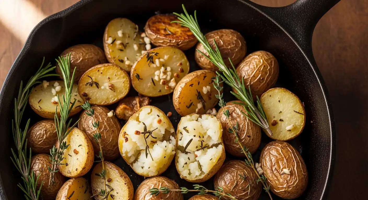 - Infuse with Flavor: While still warm, toss potatoes with extra virgin olive oil, minced garlic, freshly chopped rosemary, thyme, and parsley, plus salt and cracked black pepper.